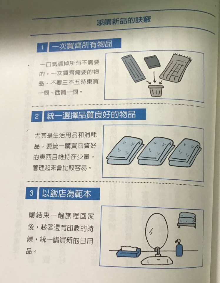 管理成本高的物品,不要買,要丟掉,例如:衣服100件,要花工夫整理、維護,就該捨棄減少數量。當一件物品不會帶給你金錢、時間或感動等回饋就要果斷地丟棄,並不再購買。
