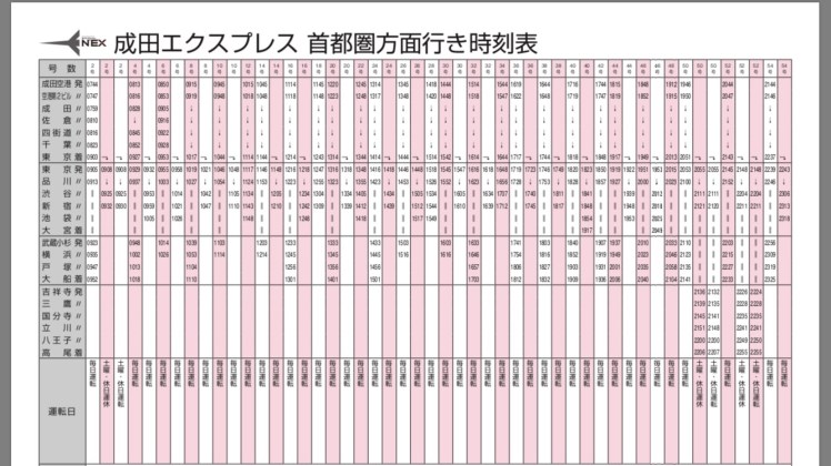 成田特快班次如下: