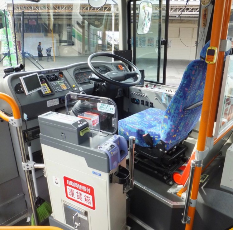日本的公車,大都是上車先抽「券」(上面會有起站的標記),下車時依你手上券的標記,看公車左上方的票價表再投票價。沒有零錢也沒關係,車上有兌幣機可以紙鈔換零錢。