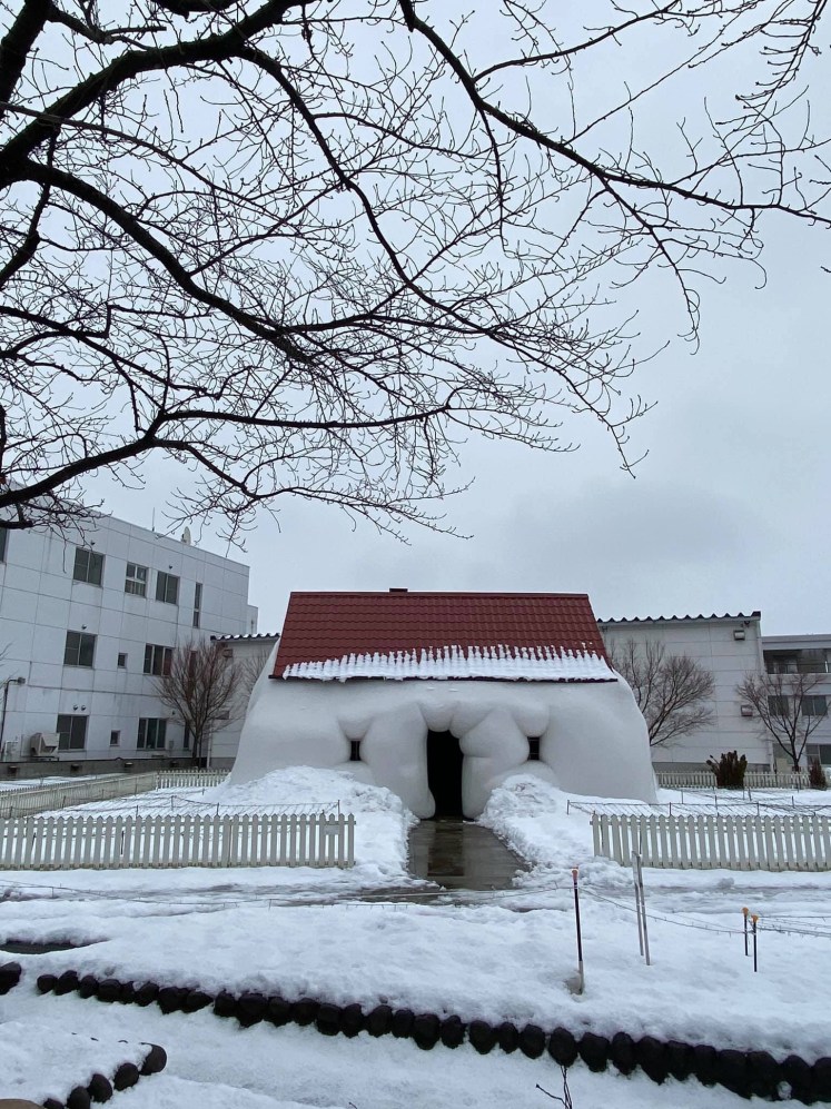 還沒出車站大門,隔著落地窗就看到一大堆厚厚的、白白的雪壁,興奮的想尖叫!我終於看到雪了!雪吔!雪吔!