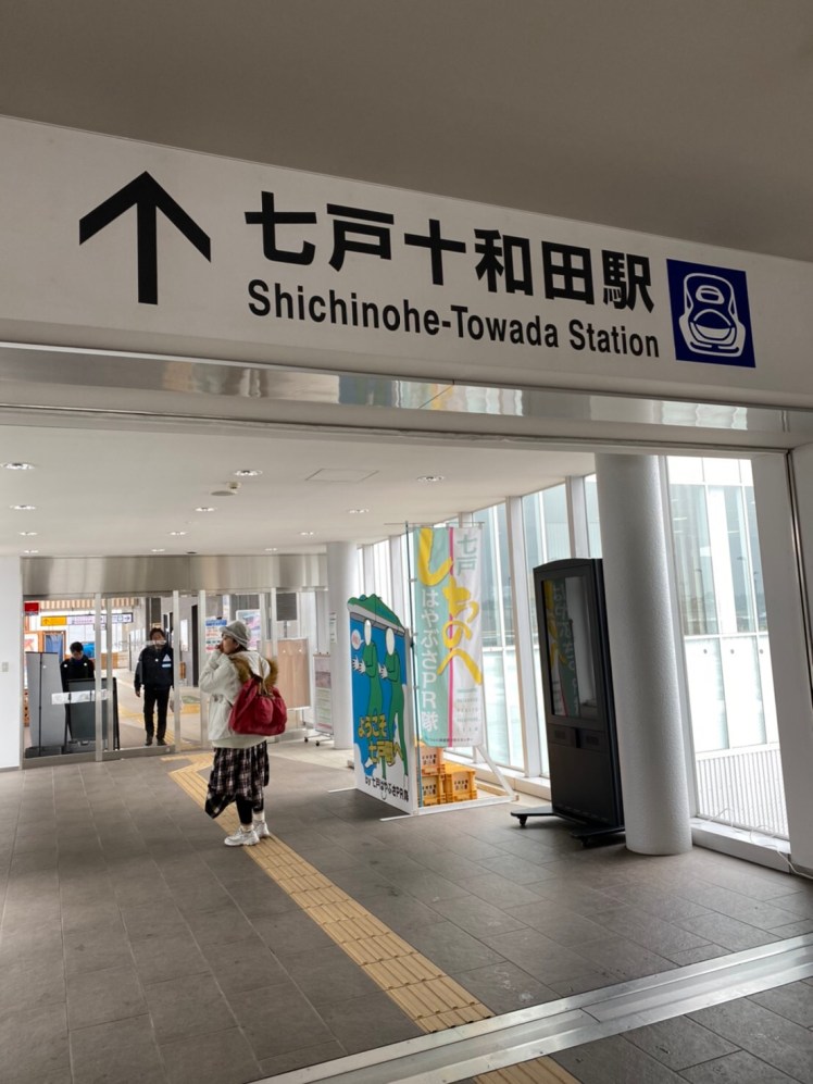 回程同去程,一樣搭十和田電鐵巴士返回七戶十和田駅,搭乘新幹線至八戶駅,預備搭乘13:30奧入瀬溪流飯店的接駁車。
