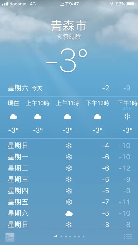 今天計劃上八甲田山挑戰低溫大魔王,行程前密切關注八甲田山的動態,希望一切順利可以圓夢欣賞到難得一見的樹冰景觀,防寒措施也非常嚴謹,厚發熱衣+針織上衣+厚褲襪+牛仔褲+雨褲+N3b外套,穿雨褲純粹是為了防風,我不會為了看一次樹冰就敗家買雪褲,所以雨褲是個好選擇,有穿真的差很多!
