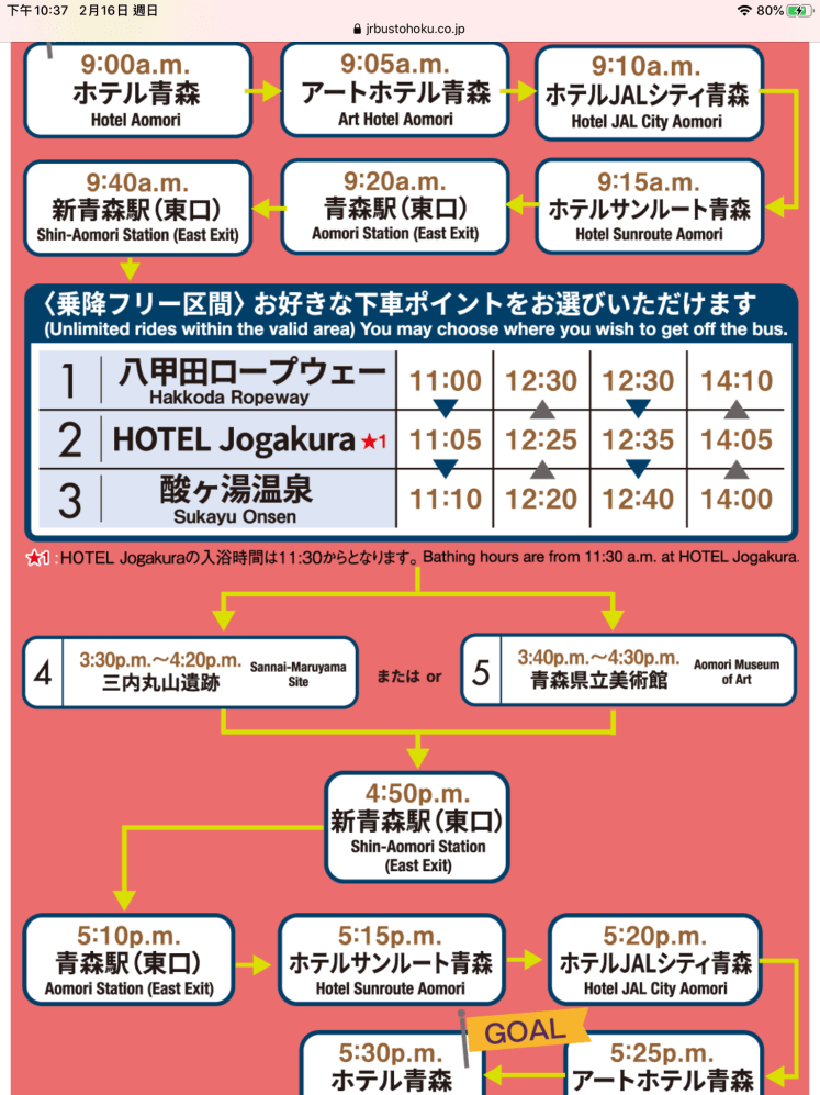 不過,觀光巴士營運時間大多是週六、日,且時刻較一般巴士晚,因為我們今天晚上的行程是要到仙台入住,所以就沒有選擇坐觀光巴士。