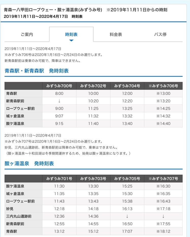 如果行程安排是二天都住在青森附近的朋友,或是沒有使用JR Pass的朋友,也可以考慮搭乘JR觀光巴士的「八甲田樹冰號」¥4000,此外巴士運行的景點還有優惠票價,搭乘八甲田山䌫車來回¥500(原價¥2000),城の倉溫泉泡湯費¥500(原價¥1000)、還提供午餐、酸湯溫泉泡湯費¥900(原價¥1000)、三內丸山遺跡及青森県立美術館則是會附贈小禮物。