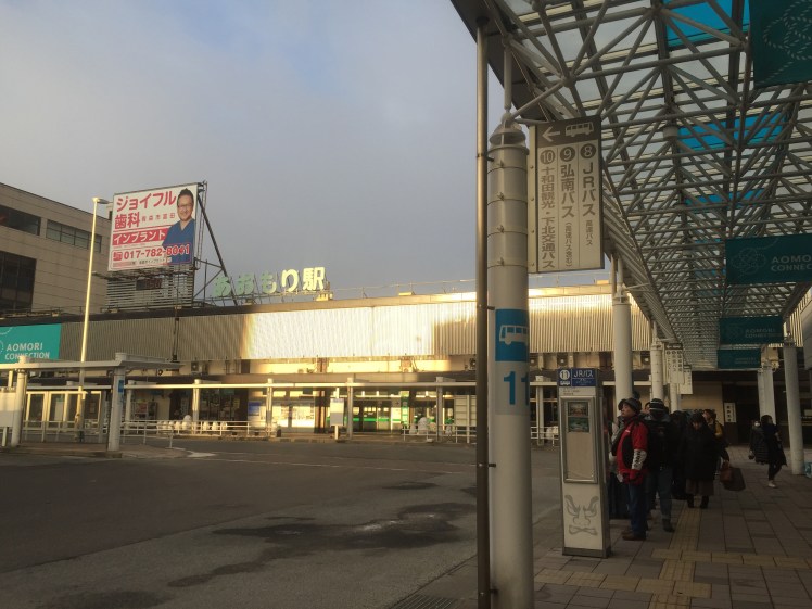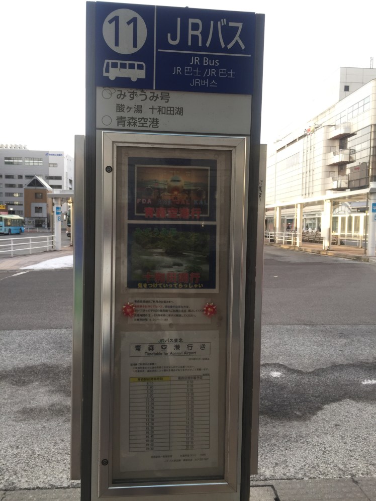 氣溫-3,但是感覺還好,從飯店出來走走5分鐘就到JR巴士乘車處,站牌位於面對青森駅的右手邊。