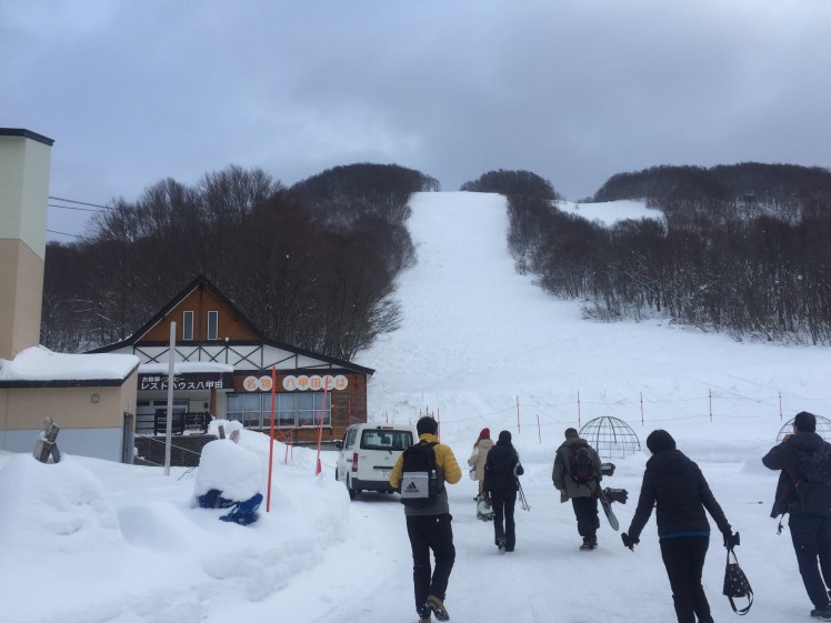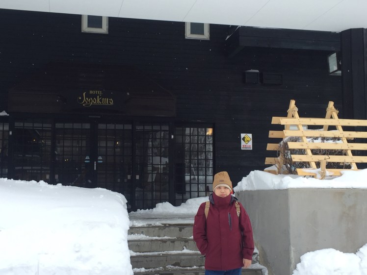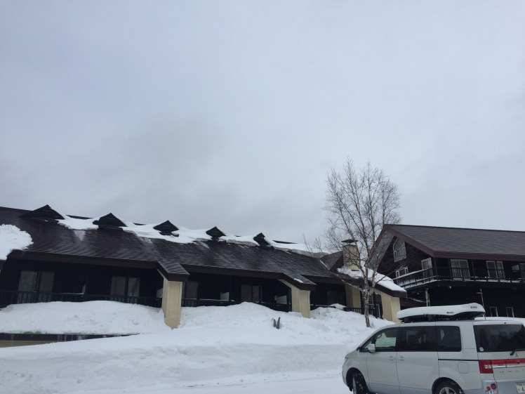 只有我們二個背著包包在城の倉飯店下車,漫步在雪地中,抬頭只看到屋頂的厚積雪,耳邊突然聽到「轟」大塊積雪落下的聲音,環顧四周更是見不到人影,心中不禁有點忐忑不安。