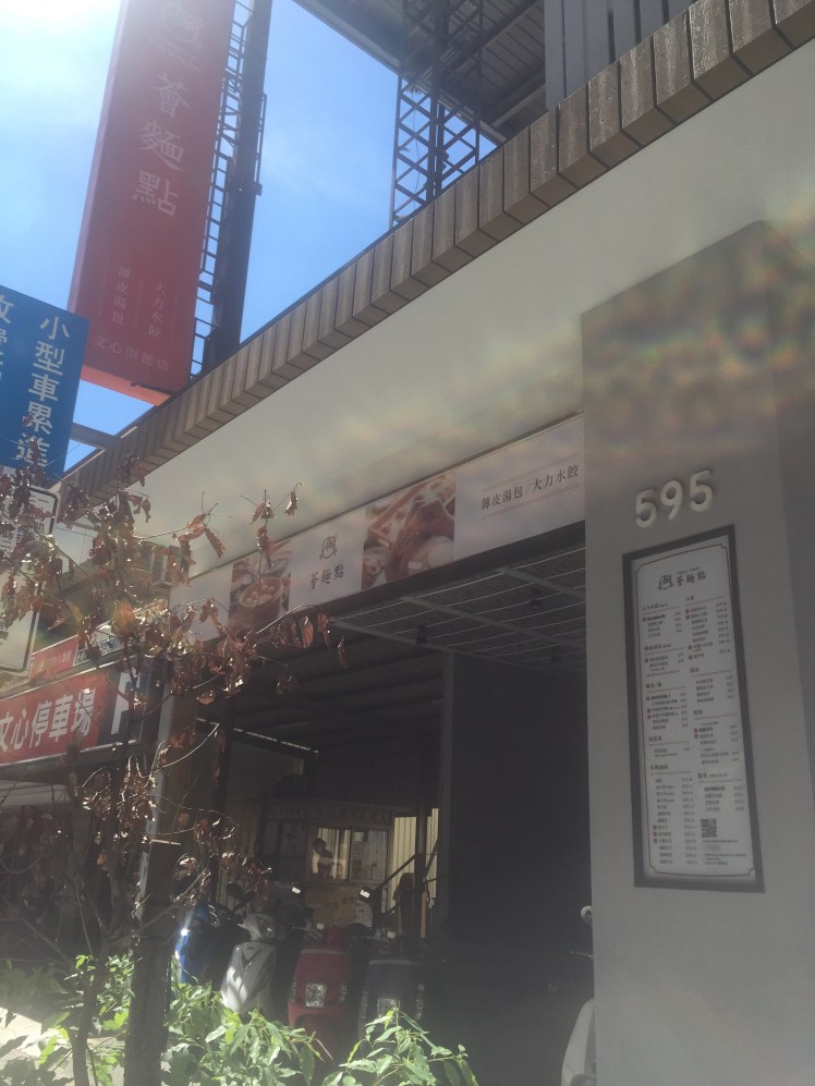 位在台中北屯區文心路四段與崇德路交叉口附近,路口就是鼎鼎大名的「赤鬼牛排」。地點不難找,只是文心路上正好有捷運線經過,人如果不是站在在赤鬼牛排這一邊,很容易就錯過「薈麵點」的招牌。
