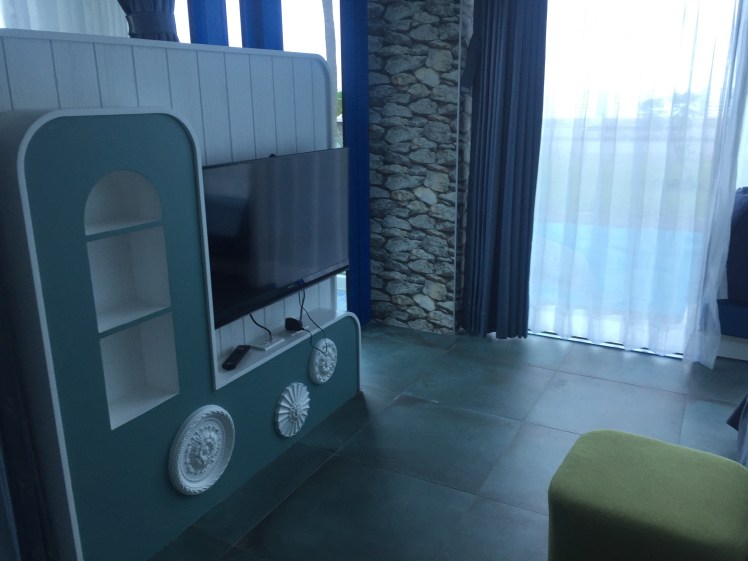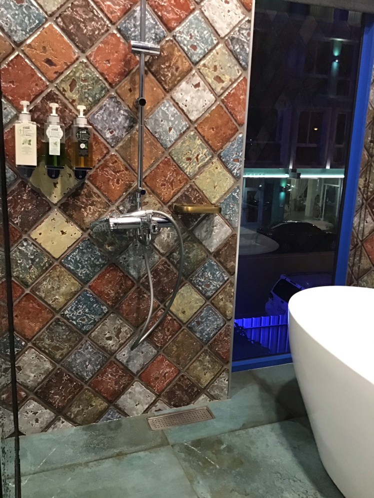 房間全部是透明的,雖說對外有窗簾、掛簾可以遮,但是房內的浴室是沒有門的Y,想像一下,你在浴室泡澡,另一位朋友在洗手台洗手,向右就看到你出水芙蓉的美景⋯⋯⋯⋯⋯實在太尷尬了😅