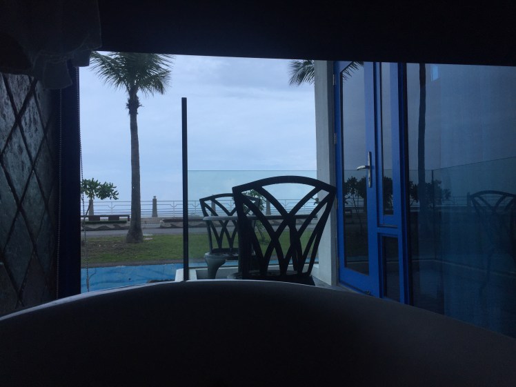 正後方再一張,我在努力研究,走在北濱步道的人,到底可以看到我在民宿內多少?因為整面都是透明玻璃丫。