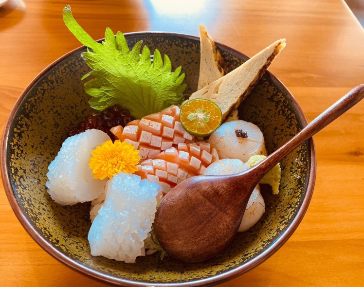 美味的醋飯狀態應該是「濕潤鬆軟」,最剛好的溫度是人體的「肌膚溫度」,這裡的醋飯就是這個樣子,很久沒吃白米飯的我,這碗丼飯,全部吃光光!