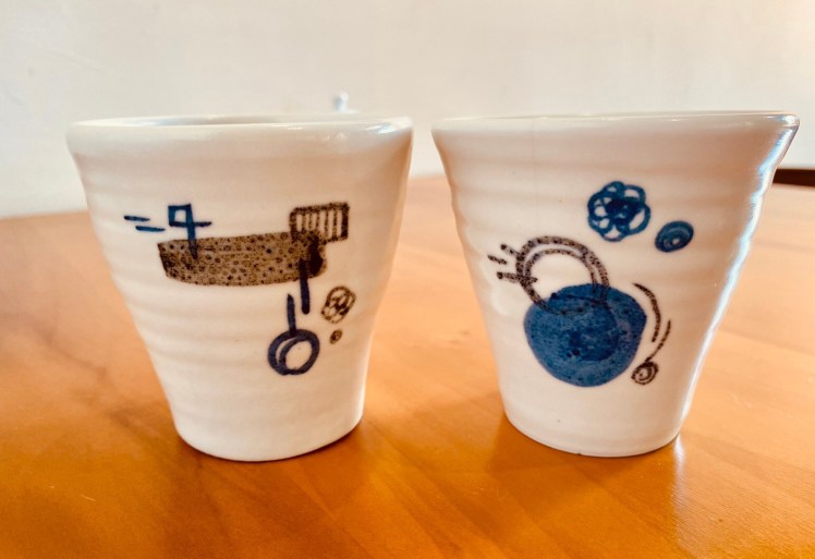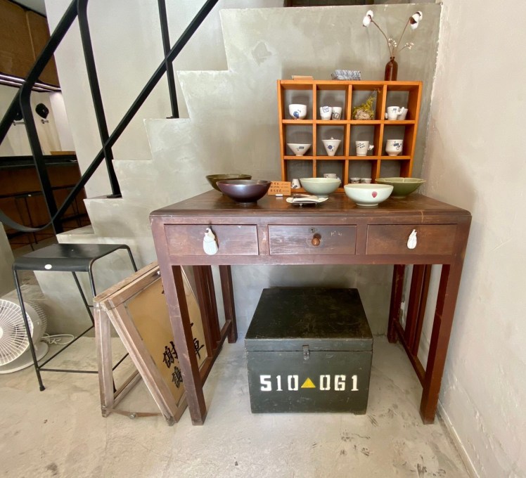 這些杯盤碗,包括店內使用的,通通是南投「千秋陶坊」的作品。
