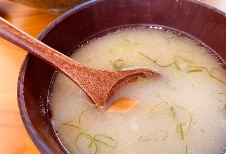 味噌湯,台灣人喜歡的口味,味噌味道不太重,湯裡有舞菇。