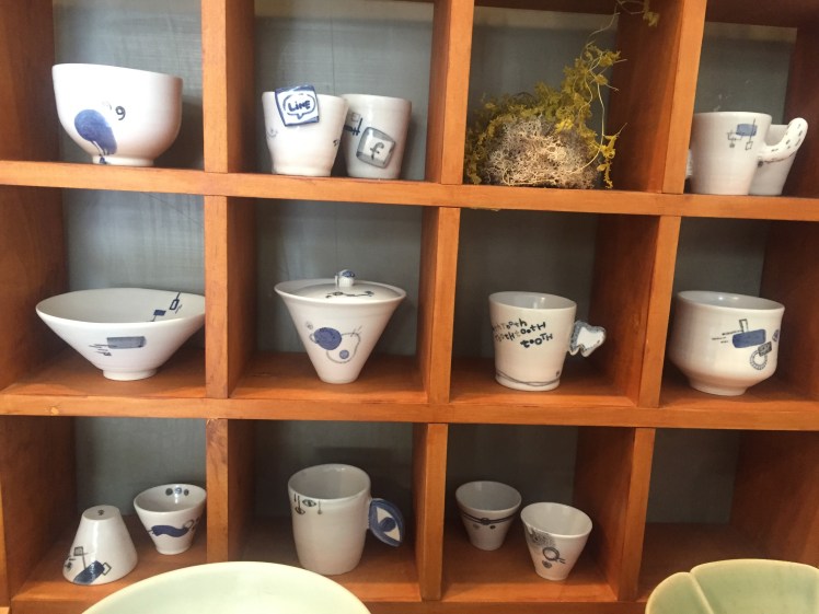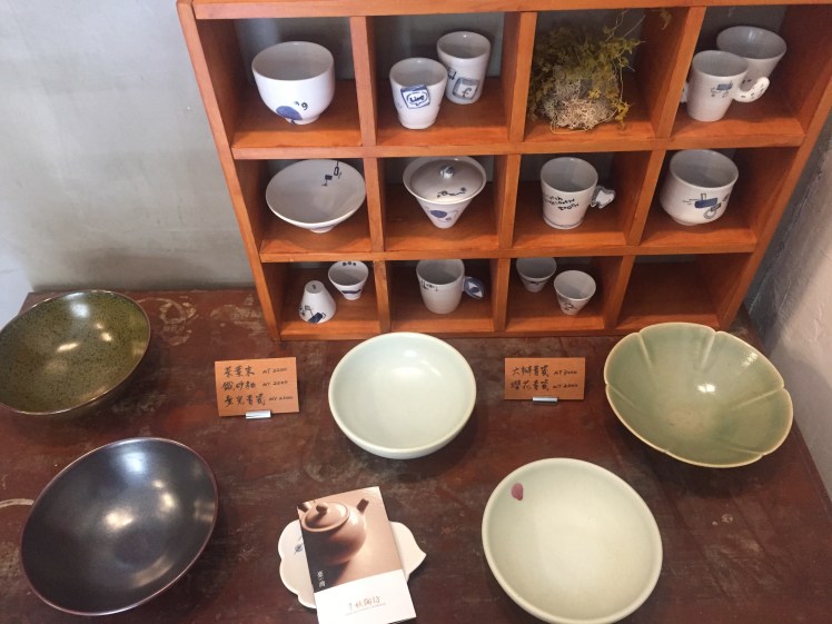 每個杯、每個碗都只有一個,服務員表示,這些架上的都是師父女兒第一次的作品,而且都是「非賣品」,您瞧,是不是都好可愛,充滿童趣,好有質感!