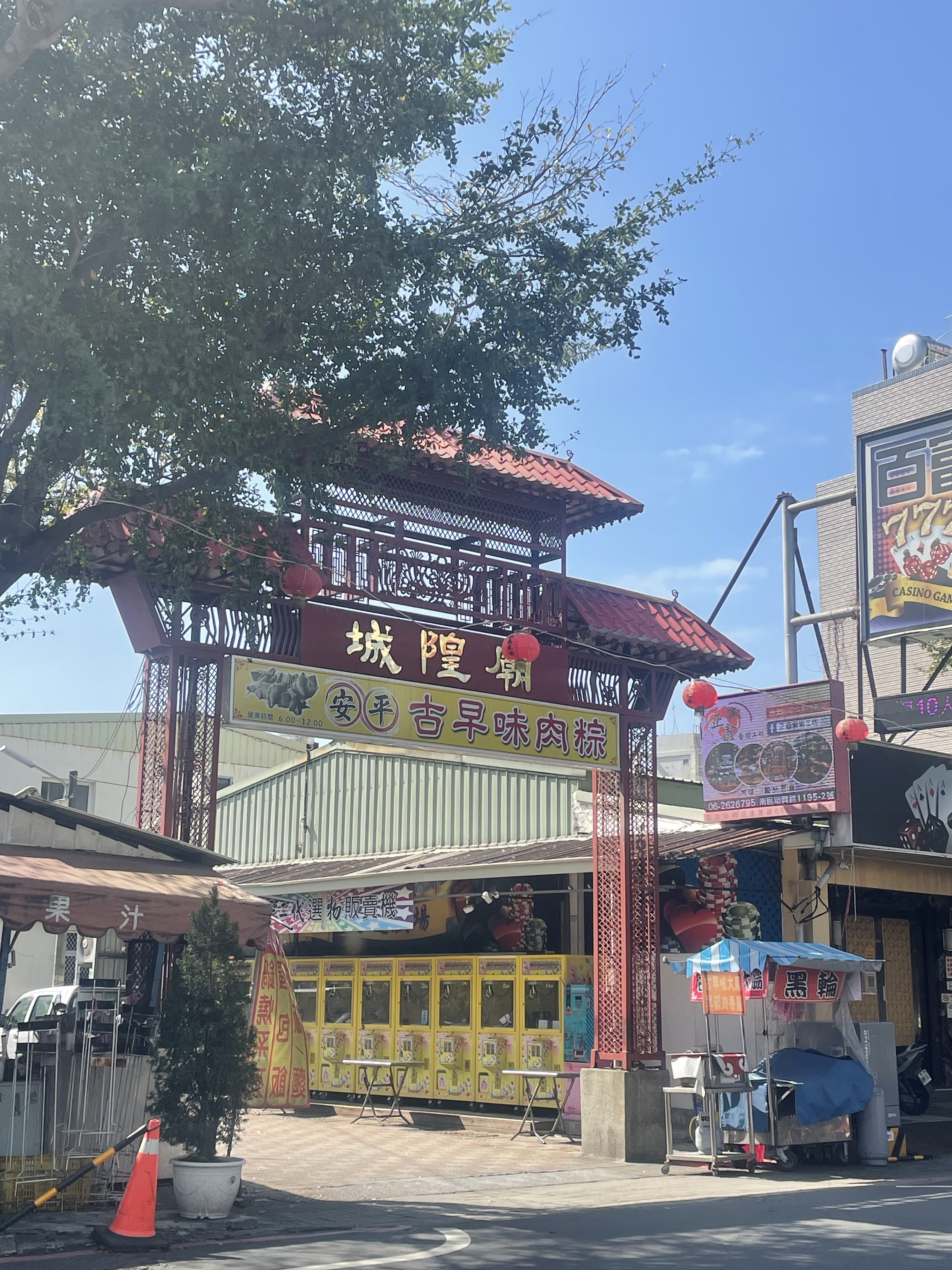 不難找,在路邊的牌樓就掛著大大「安平古早味肉粽的」的招牌。