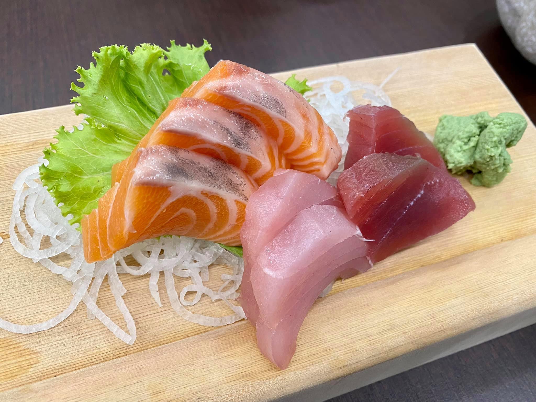 看看這個厚度,口水都快滴下來了,綜合生魚片$280,後悔我們應該要一人點一份才對,二個人為了落單的那塊鮭魚生魚片,差點大打出手😂