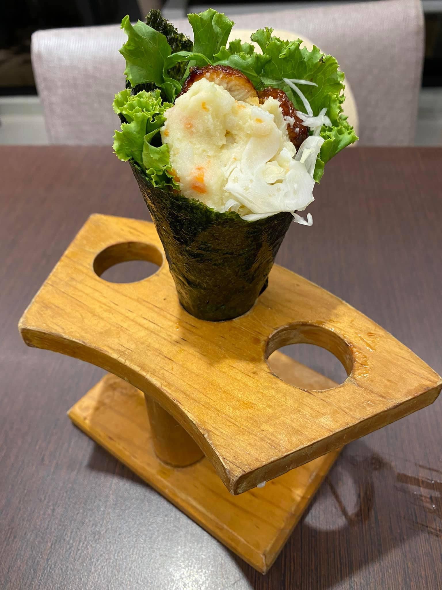 鰻魚手捲$150,𥚃面包的不是醋飯,而是薯泥,非常特別且美味,適合我這種,不愛吃太多飯,卻又想吃鰻魚的人。