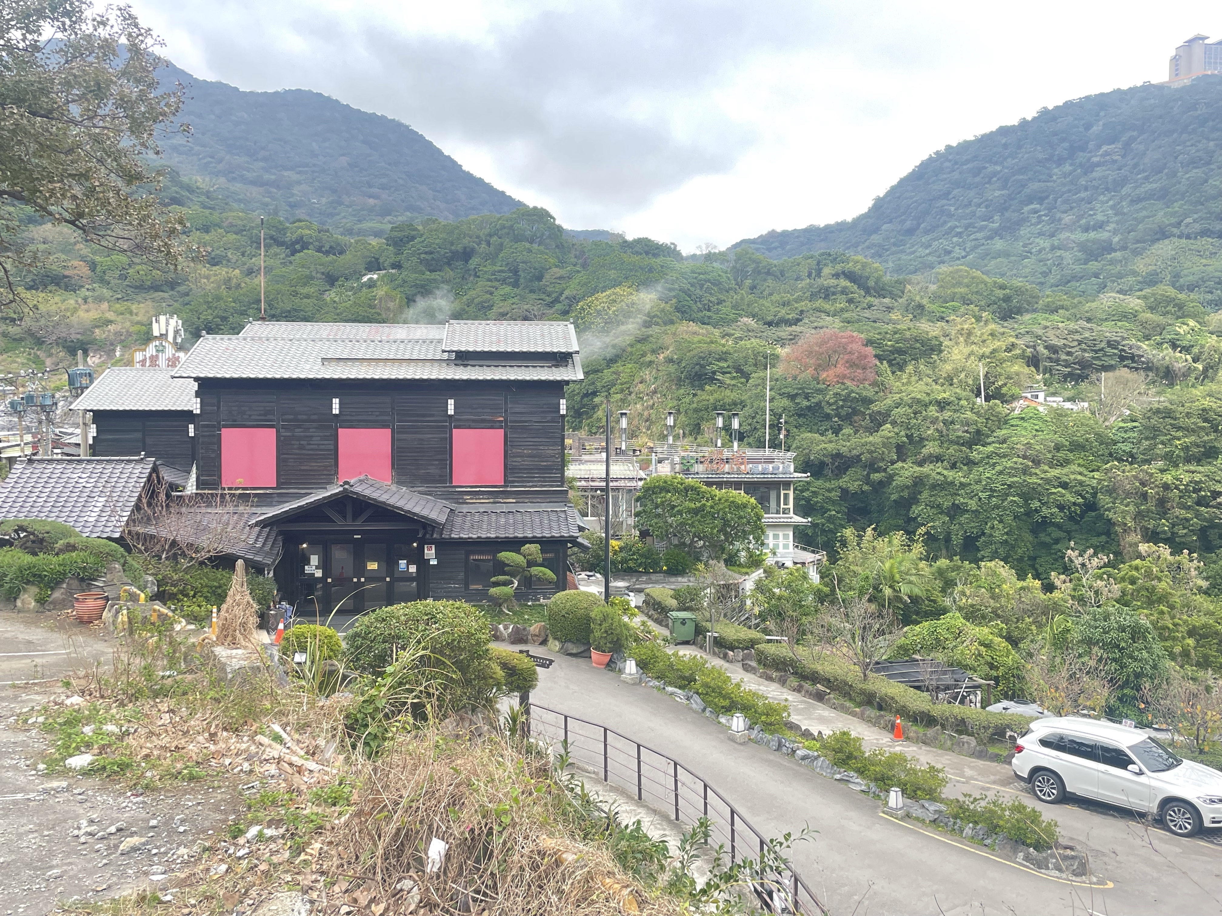 搭公車至「行義路三」,再稍稍向前走就會看到一間很像湯婆婆的湯屋😄