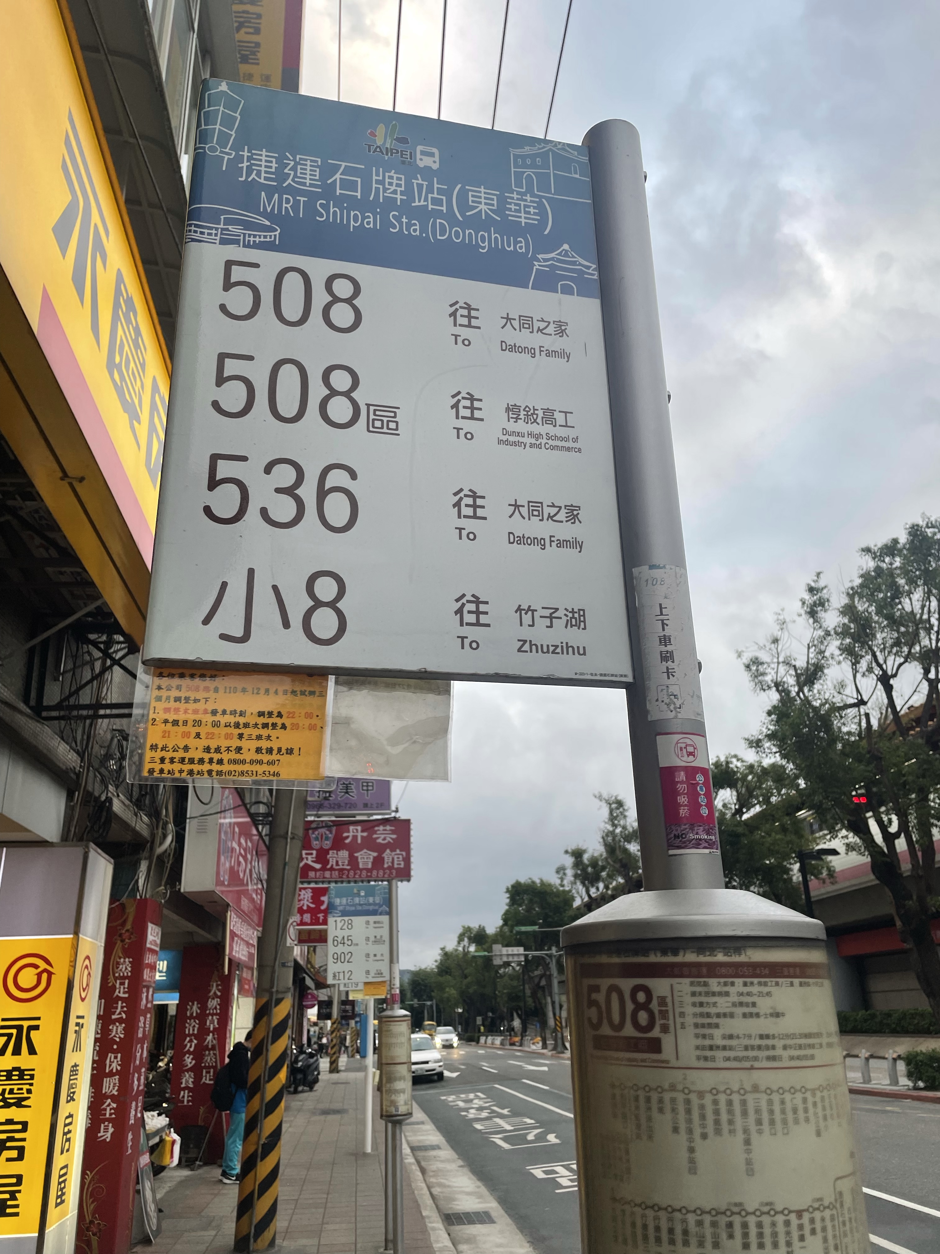搭乘捷運淡水線到石牌站下車,走到對面的公車站牌(捷運石牌站東華)等車,班次還蠻多的,站牌上的這些通通可以坐,今天要到北投天母的湯瀬温泉♨️泡湯。