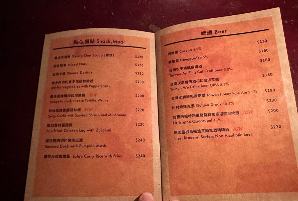 隔了3個月再訪,發現酒類的菜單不一様了,上回喝的奶酒、精釀啤酒,這回沒有了。