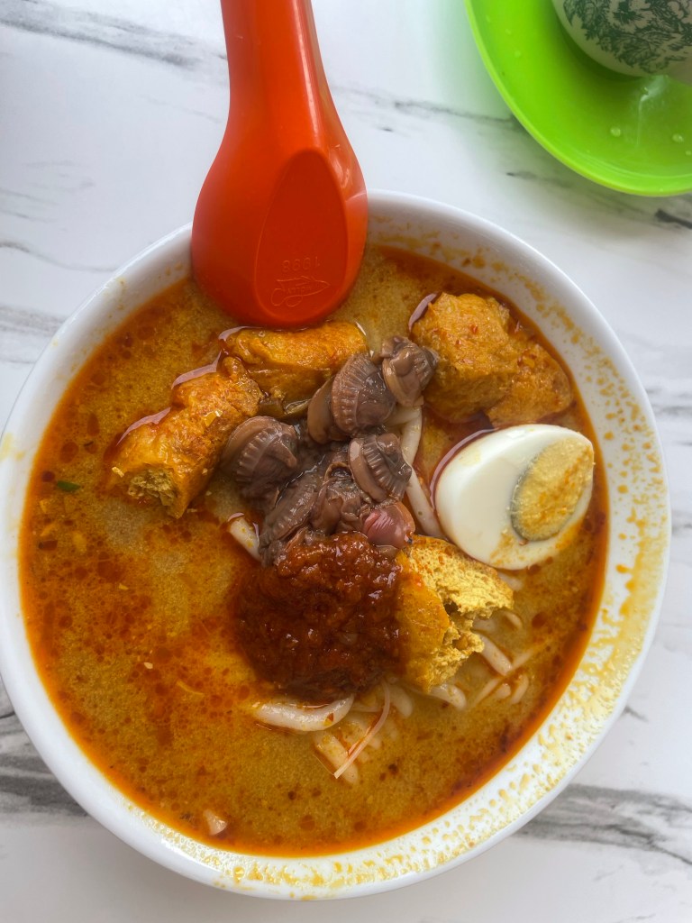 點了鮮蛤咖哩叻沙、客家面、釀料(我覺得,它就像關東煮),還有咖啡