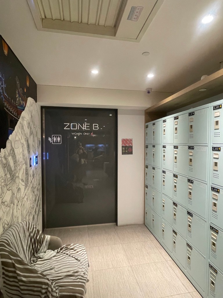 置物櫃放不下行李箱,但是放背包、其他物品綽綽有餘。